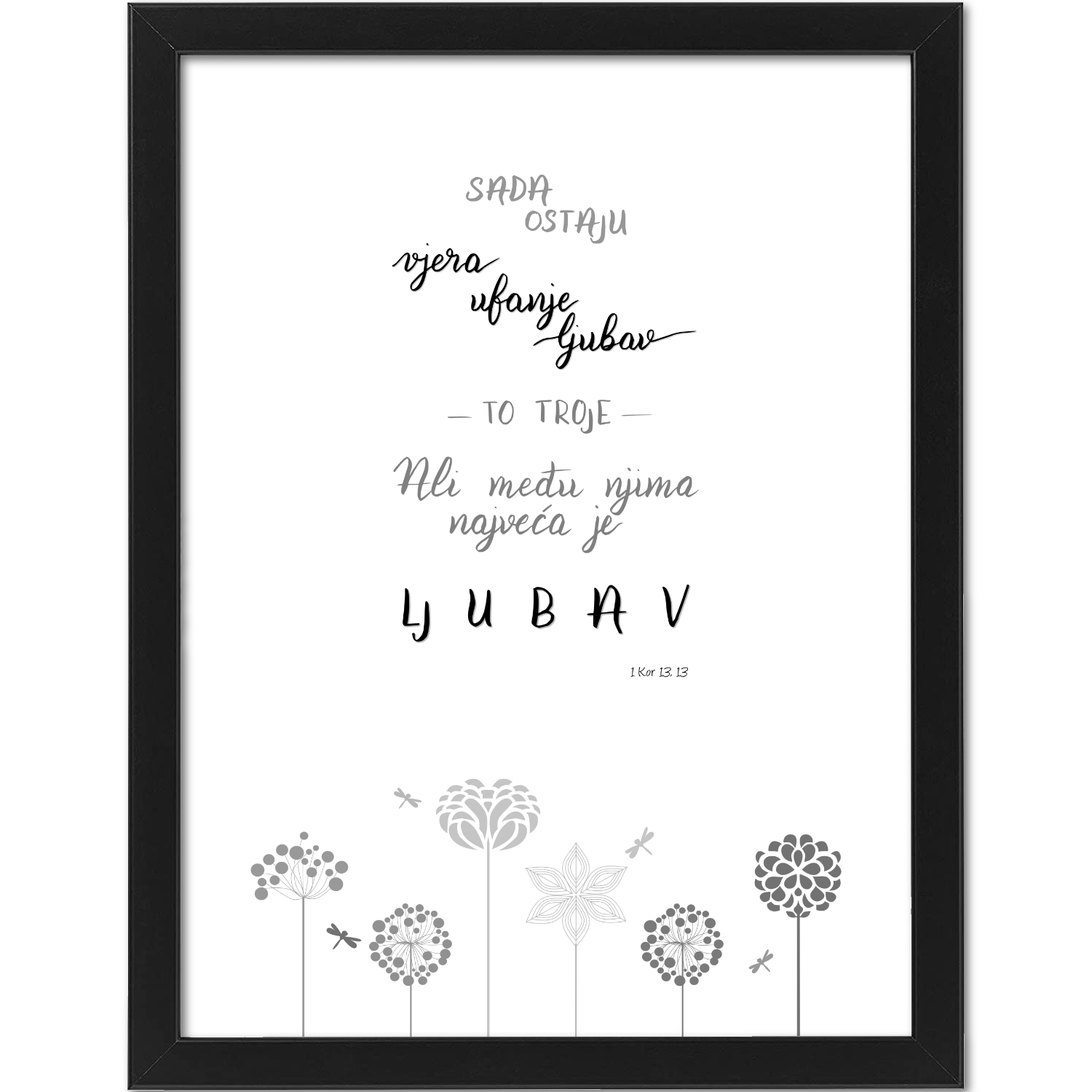 30×40 Plakat – Sada ostaju vjera ufanje ljubav (crno-bijeli)